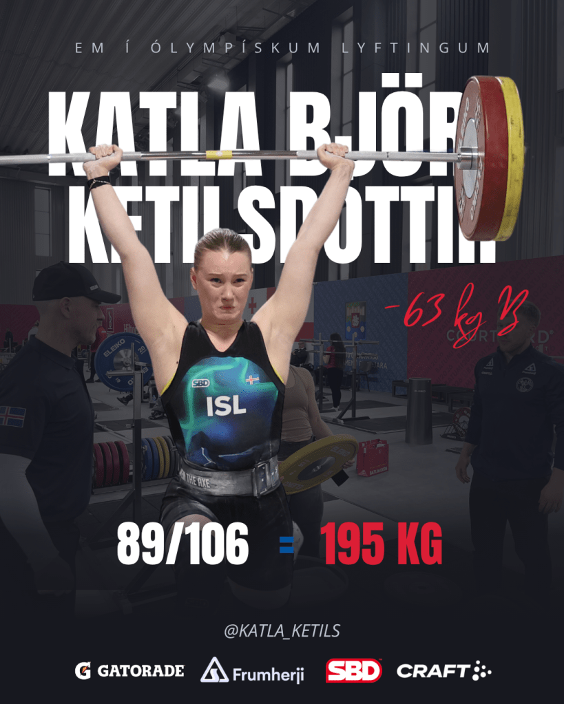 sæti – Katla Björk Ketilsdóttir, – 63 kg, Ísland, samanlögð þyngd 193 kg og 256.895 Sinclair stig