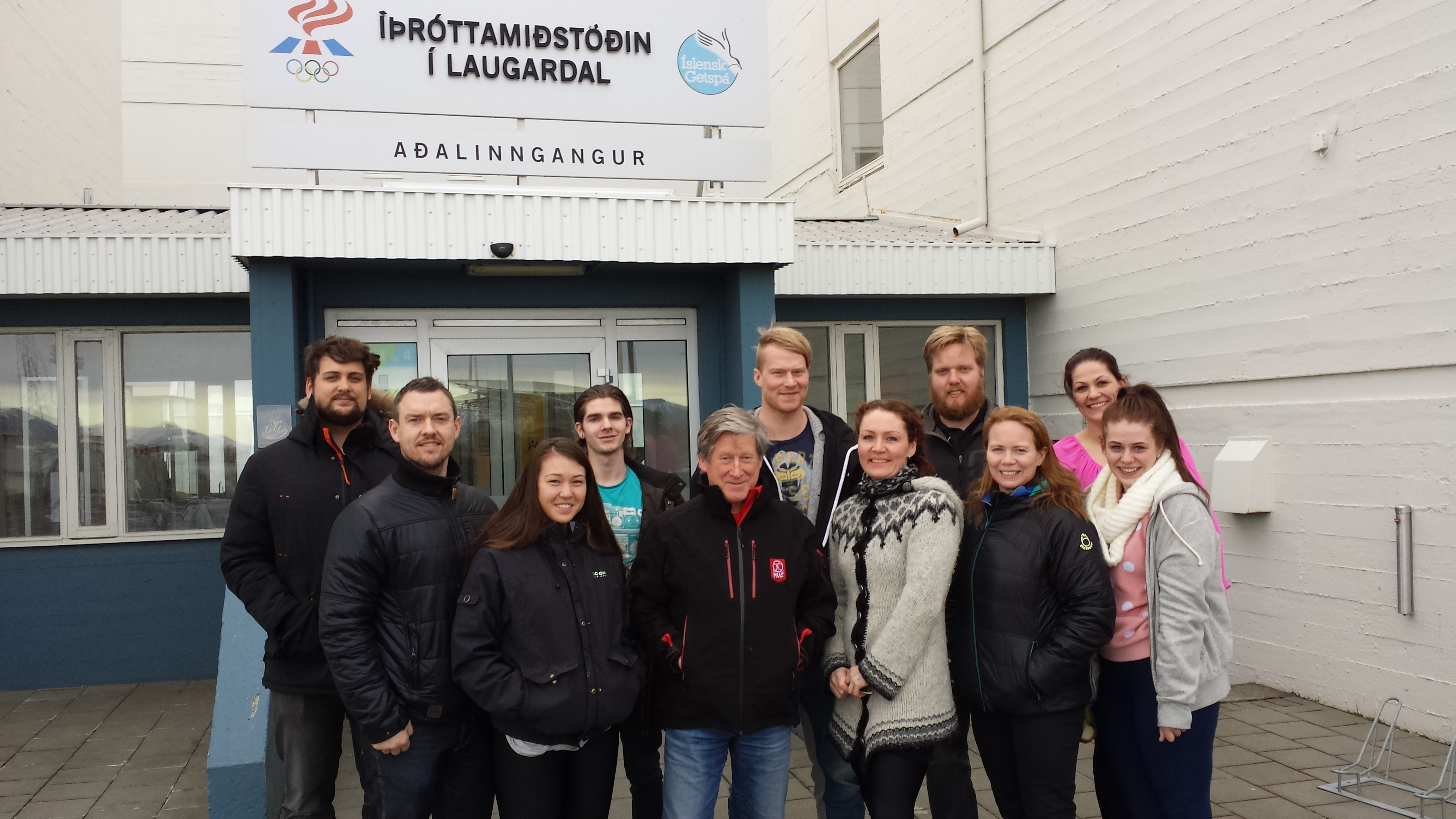 Nemendur ásamt Per fyrir utan Íþróttamiðstöðina í Laugardal