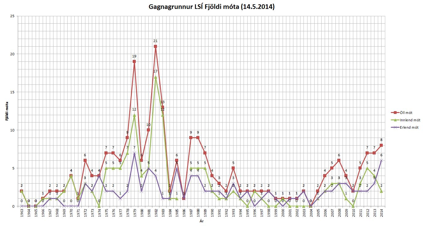 Misvel hefur verið staðið að skráningu árangra í gegnum tíðina en stuðst hefur verið við heimildir frá Ársskýrslum LSÍ sem og gömlum blaða/fréttatilkynningum. Allar ábendingar um mót sem vantar inn / rangar innfærslur / fæðingarár iðkennda osfr. skulu sendast á skraningar@lsi.is .
