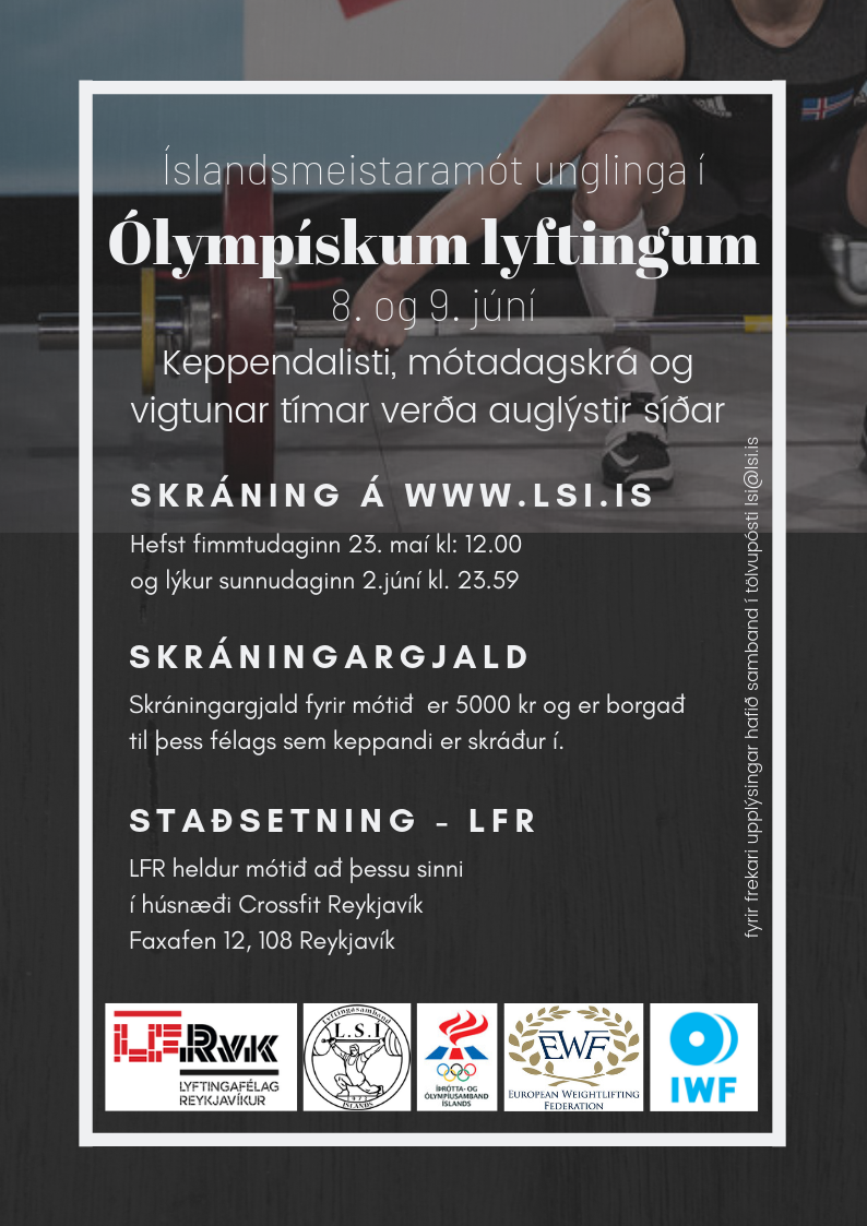 Íslandsmeistaramót Unglinga Birt þann maí 23, 2019 af María Rún Þorsteinsdóttir Skráningaform hér —> https://forms.gle/AvZ62KscHqo2fu8E7 Deila: Click to share on X(Opnast í nýjum glugga) X Click to share on Facebook(Opnast í nýjum glugga) Facebook Click to share on LinkedIn(Opnast í nýjum glugga) LinkedIn Líka við Hleð... Tengt efni