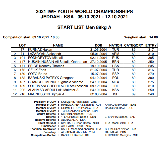 keppir í 89 kg flokki í A hóp þann 9. október kl: 13:00 á íslenskum tíma