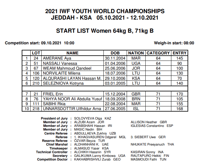Úlfhildur Arna Unnarsdóttir (f. 2005) hefur keppt í lyftingum frá 12 ára aldri eða síðan 2017 er hún tók þátt í fyrsta sinn á móti á Íslandsmeistaramóti Unglinga en keppti hún þá í 53 kg flokki meyja. Það mót náði Úlfhildur 29 kg í snörun og 44 kg í jafnhendingu og þá með 73 kg í samanlögðum árangri. Síðan hefur mikið vatn runnið til sjávar en í dag keppir Úlfhildur í 71 kg flokki og á best 80 kg í snörun, 90 kg í jafnhendingu og 168 kg í samanlögðum árangi. Úlfhildur á hæstu Sinclairstiga tölu í U15 sem skráðst hefur og þriðju hæstu Sinclairstiga tölu í U17 með 210,62 stig. Ekki veit pistlaskrifandi hversu hátt Úlfhildur ætlar á mótinu en telur þó möguleika á því að Úlfhildur taki íslandsmetið í snörun sem Úlfhildur hefur nú þegar jafnað á móti með 80 kg og jafnvel pæling hversu hátt hún nær upp í íslandsmetið í jafnhendingu sem 97 kg í dag eða íslandsmetið í samanlögðum árangri sem er 177 kg. Úlfhildur heldur nú 2 íslandsmetum en hefur sett önnur 24 met á ferlinum.