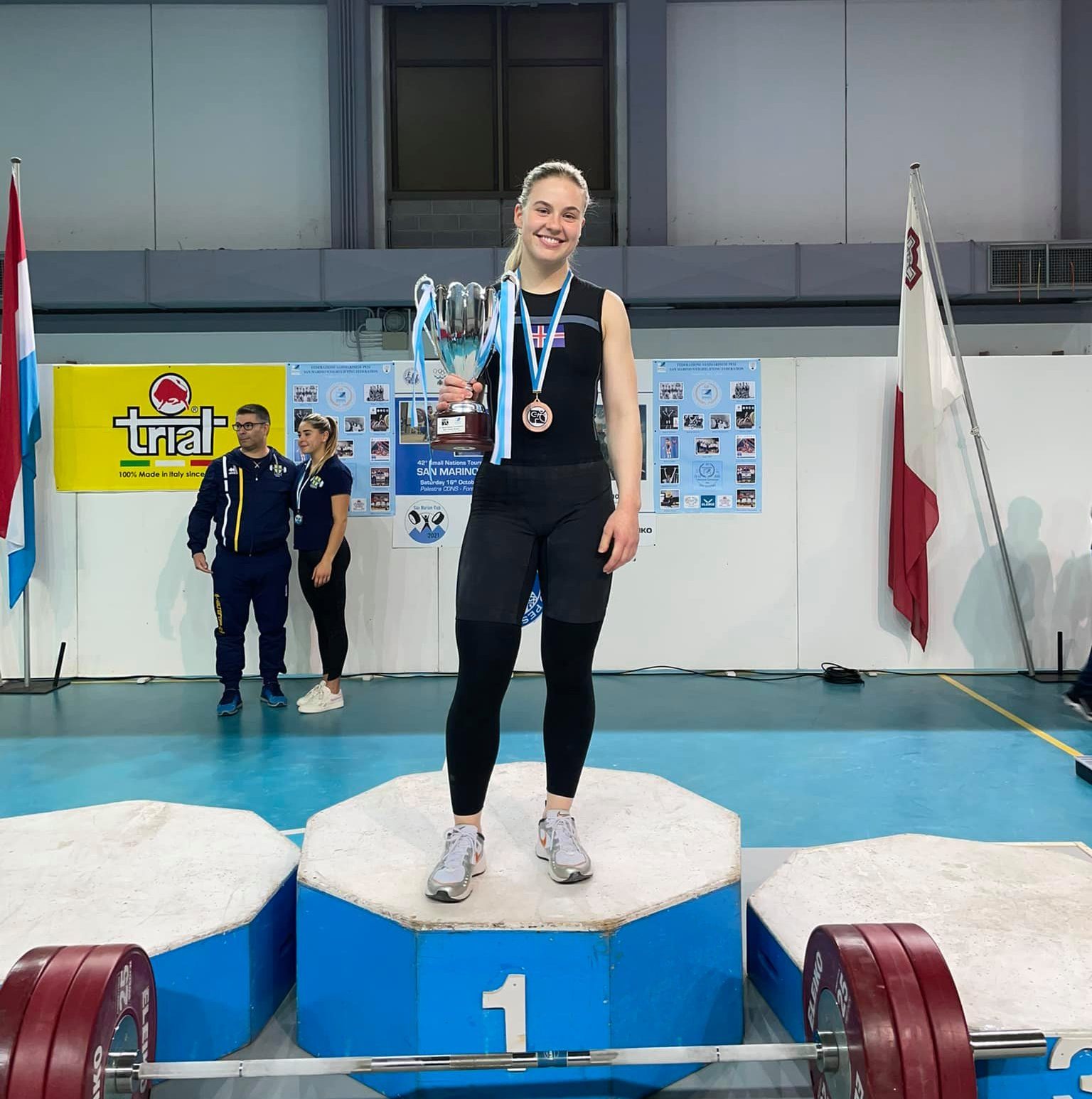 Íslands átti svo sannarlega frábæran keppnisdag á Smáþjóðleikunum laugardaginn 16.okt! Smáþjóðleikarnir eru liðakeppni í Sinclair stigum en fyrir þá sem vita það ekki þá eru sinclair stig þau stig sem reiknast út frá samanlögðum árangri keppenda og líkamsþyngd hans. Í liðakeppnum eins og smáþjóðleikunum eru síðan öllum stigum landsliðsins tekin saman og ákvarðar sú tala hvar liðið endar á palli. Á Smáþjóðleikunum í ár endaði Ísland í 3. sæti og erum við hæst ánægð með okkar fólk! Til hamingju Ísland!