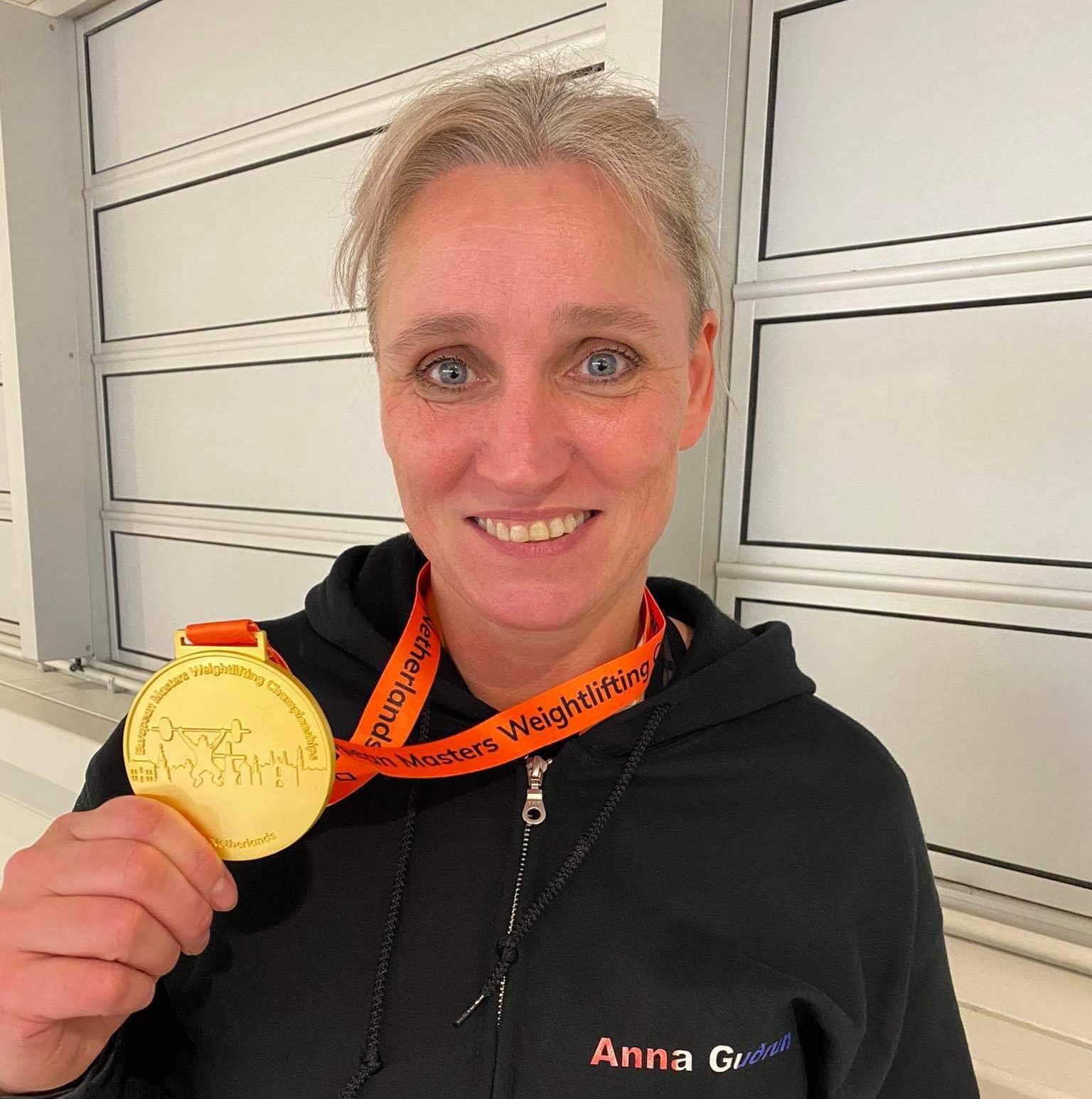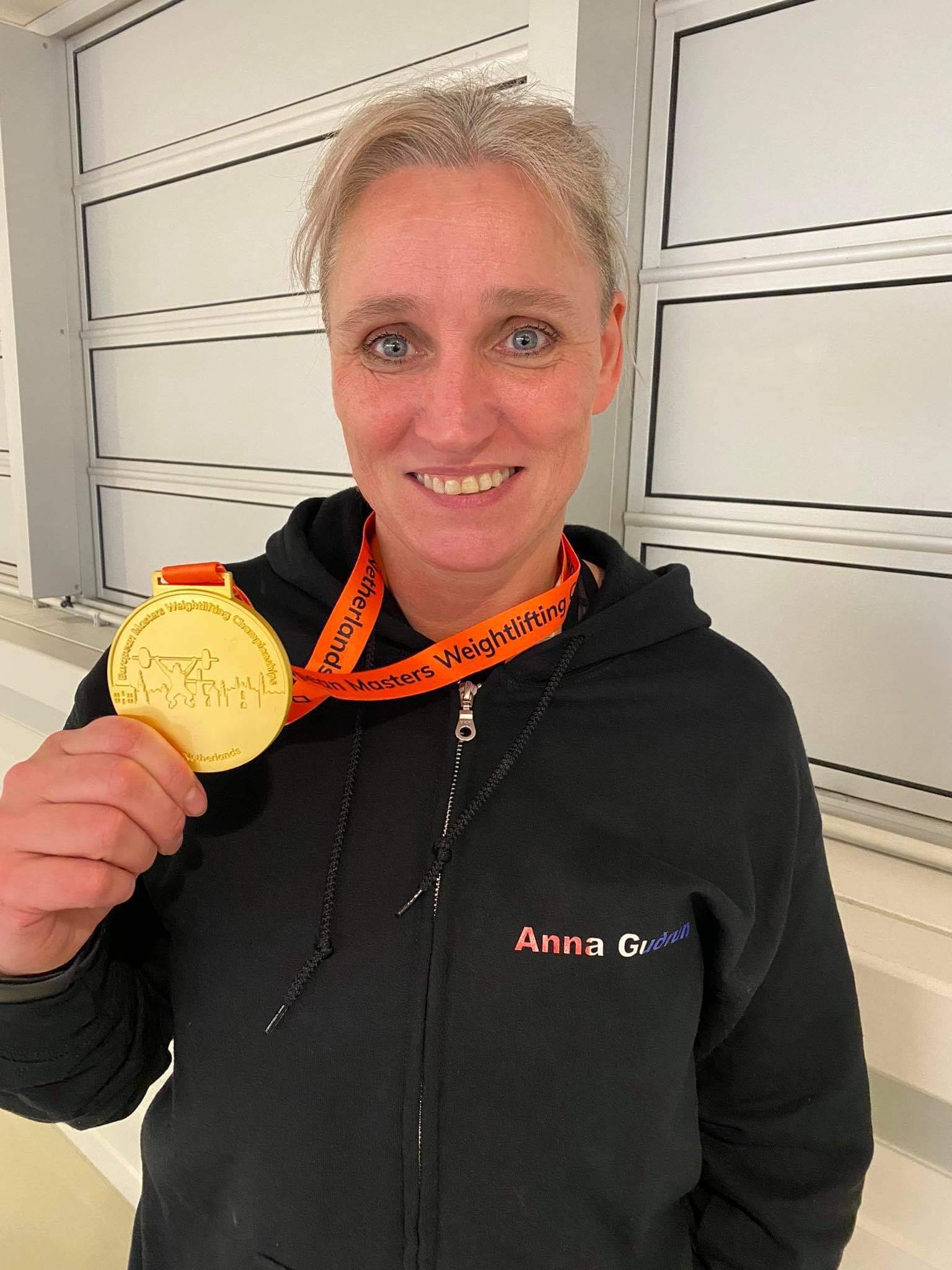 Anna Guðrún Halldórsdóttir (f. 1969) gerði sér lítið fyrir og nældi sér í 1. sæti á Evrópumeistaramóti Masters í Alkmaar í Hollandi í gær, 18. október. Ekki bara það heldur setti hún nýtt evrópu- og heimsmet í snörun í 81 kg flokki kvenna í Masters 50 flokknum með 62 kg og jafnaði heimsmetið í jafnhendingu með 80 kg en bætti þar með evrópumetið í hennar aldurs og þyngdarflokki um 2 kg! Þetta skilaði henni 142 í samanlögðu sem fór 4 kg ofar en seinasta evrópumet og 2 kg ofar en heimsmetið í samanlögðum árangri.