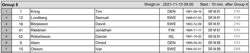 Eygló Fanndal Sturludóttir (f. 2001) frá Lyftingafélagi Reykjavíkur keppir í 71 kg flokki kvenna. Eygló keppti á sínu fyrsta móti 2018 og var þá með 54 kg í snörun og 70 kg í jafnhendingu. Mikið vatn hefur nú runnið til sjávar og hefur Eygló nú reynt við 92 kg í snörun sem fór þó ekki upp á íslandsmeistaramóti Unglinga í október síðastliðin, en hefði það orðið að nýju norðurlandameti í juniorflokki (U20) stúlkna. Spennandi verður að vita hvort hún nái einnig 112 kg upp í jafnhendingu sem hún reyndi við á Smáþjóðleikunum í október. Sjáum til hvað setur á morgun, fylgstu með.