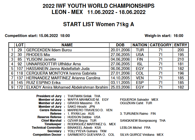 Báðar keppa þær í -71kg flokki, en Bergrós keppir klukkan 10 að staðartíma í B-grúppu (15:00 á okkar tíma) og Úlfhildur klukkan 18 að staðartíma í A-grúppu (23:00 á okkar tíma)