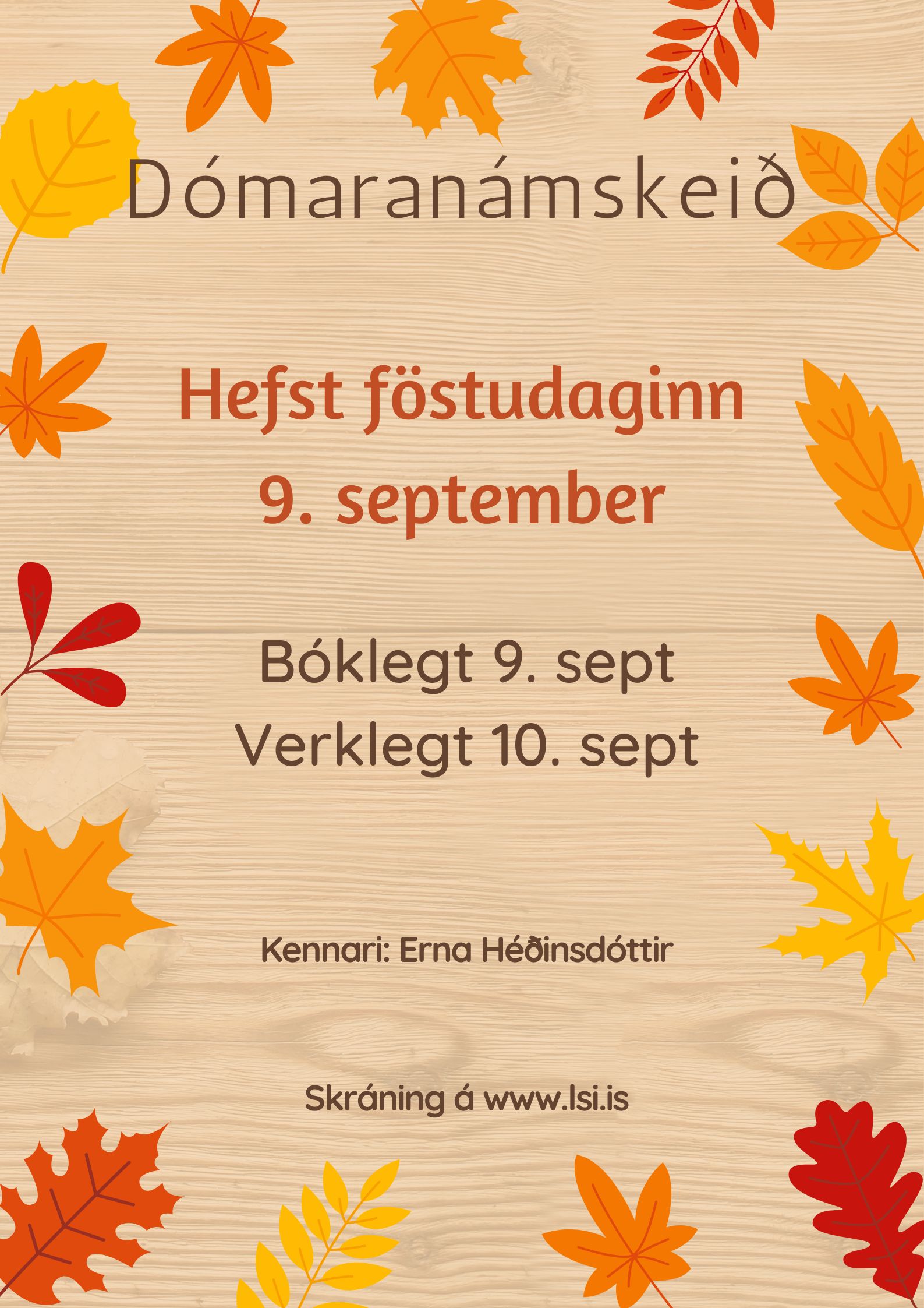 Bóklegur hluti og sýnikennsla fer fram að