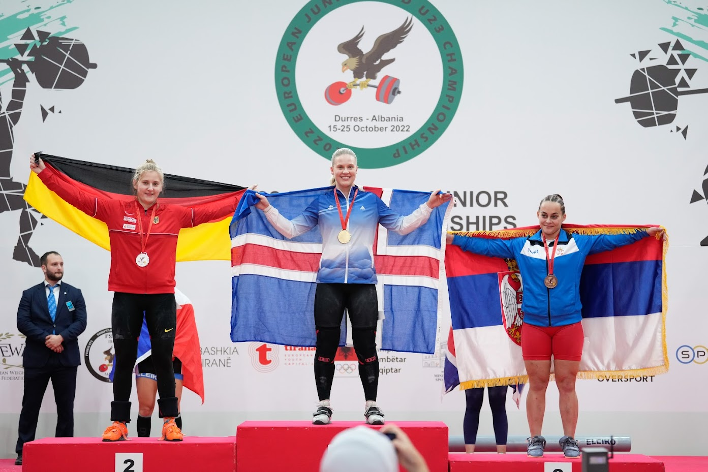 Eygló Fanndal Sturludóttir (f.2001) hreppti í dag fyrstu gullmedalíur á Evrópumeistaramóti í lyftingum, frá upphafi. Ein gullmedalía dugði ekki heldur gerði hún gott betur og kemur heim með gull í öllum greinum. Snörun, jafnhendingu og samanlögðu. Eygló bar höfuð og herðar yfir aðra keppendur, en sú sem varð í 2. sæti var 12kg undir Eygló í samanlögðum árangri.Þess má geta að Eygló heldur nú öllum íslandsmetum í U20, U23 og Senior í 71 kg og 76 kg flokki kvenna. Einnig heldur hún norðurlandametum U20 í snörun bæði í 71 kg flokki og 76 kg flokki.