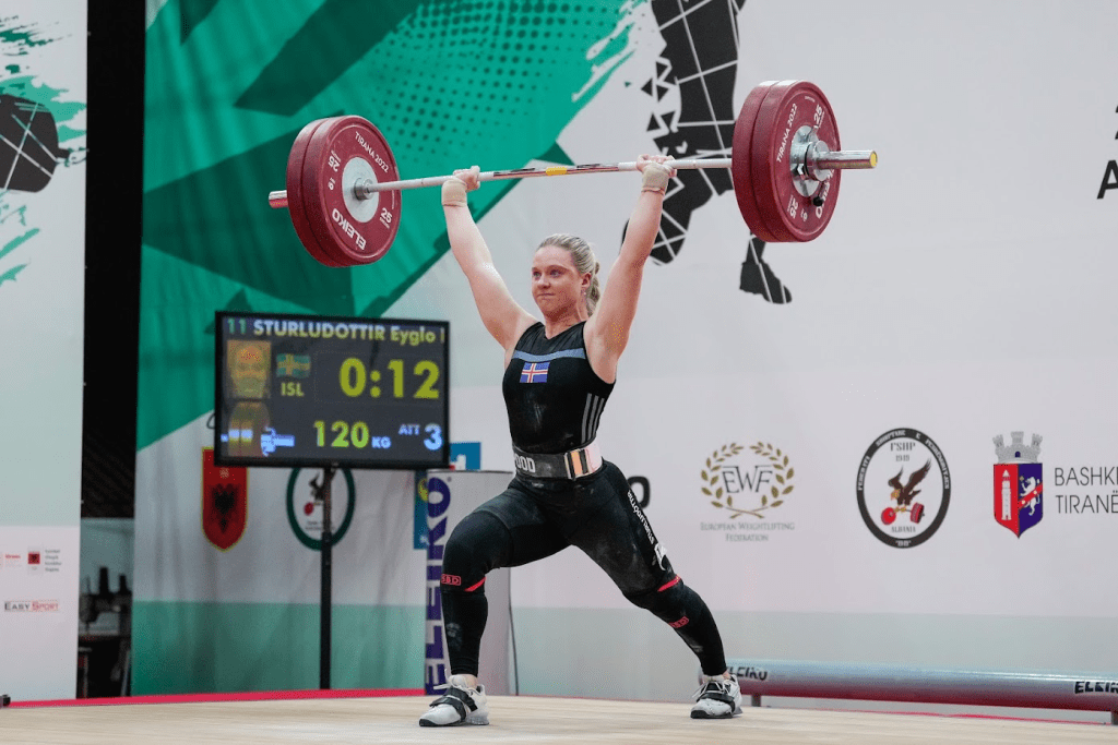 Af Evrópubúum var Frakkinn Marie Josephe Fegue áttunda með 241kg, Ítalinn Giulia Miserendino (lyfti áður í -64kg flokki) níunda með 233kg, Bretin Sarah Davies 14. með 223kg, Lisa Marie Schweizer frá Þýskalandi 16. með 220kg og síðan Eygló 19.
