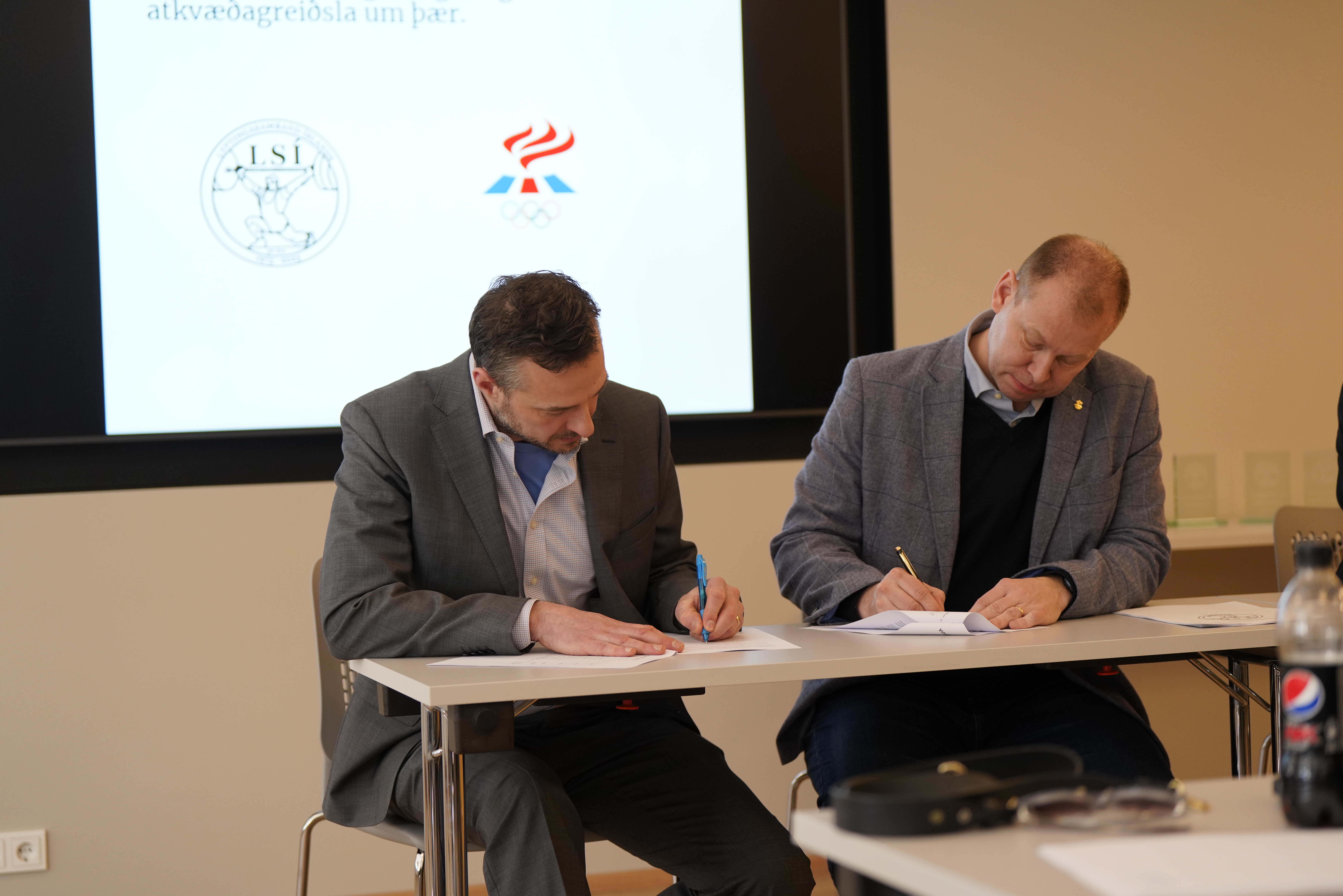 Eftir hefðbundin þingstörf undirrituðu fráfarandi formaður Magnús Þórðarson og nýkjörinn formaður Helga Hlín, samning við framkvæmdastjóra ÍSÍ, Andra Stefánsson og 2. varaformann Hafsteinn Pálsson, um að Lyftingasamband Íslands fari úr flokki þróunarsambands C upp í alþjóðlegt B samband hjá ÍSÍ.