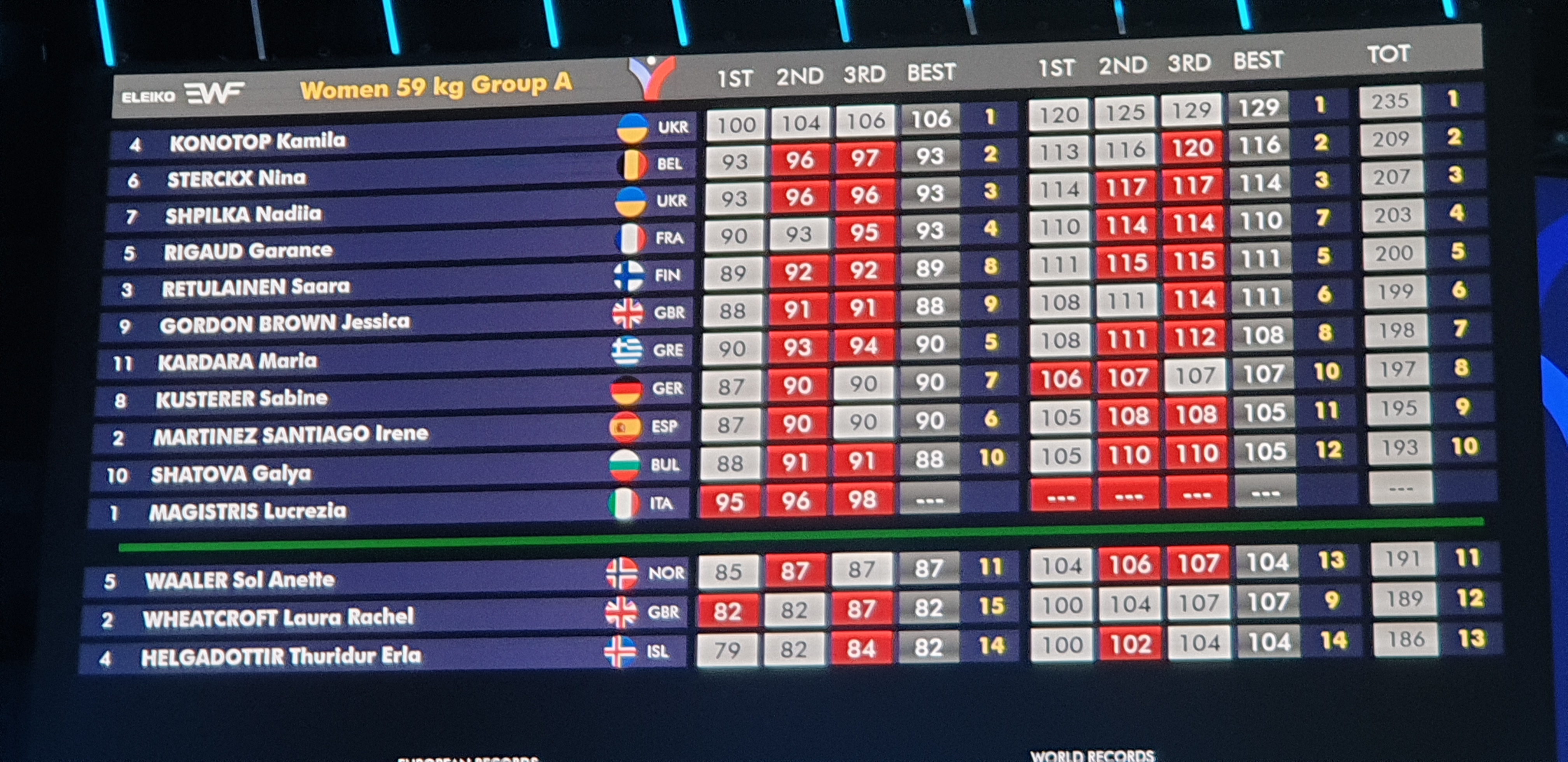 Í samanlögðum árangri lyfti hún 186 kg og hafnaði í 13. sæti í flokknum í heild.