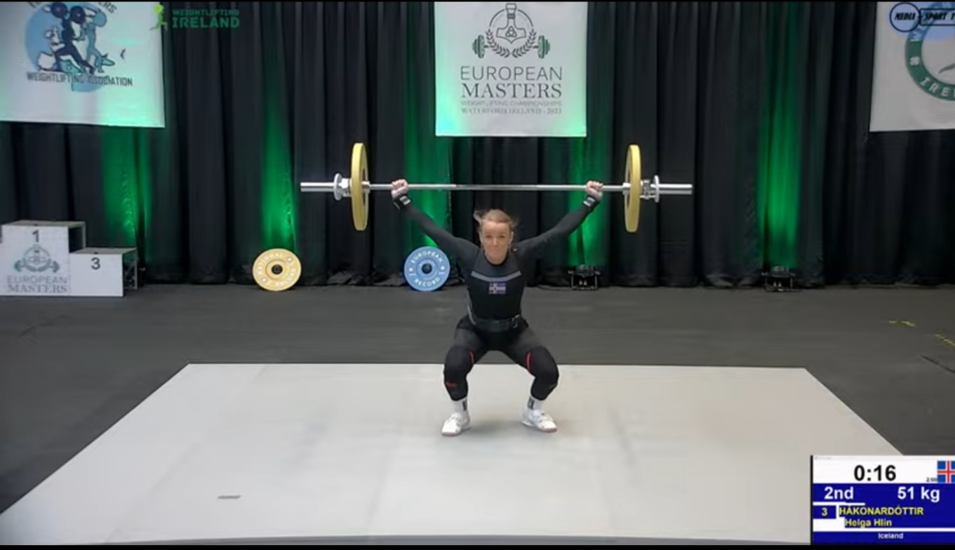 Hún opnaði með 51kg snörun sem vildi ekki alveg upp. Hún tók svo 51kg alla leið í annarri tilraun. Í þriðju tilraun reyndi hún við 55kg sem ekki vildu upp í dag.