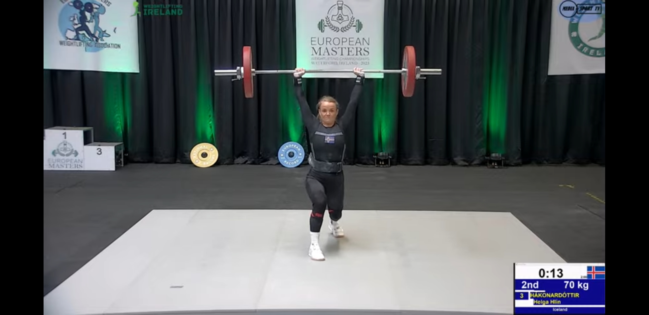 Helga Hlín Hákonardóttir sigraði á Evrópumeistaramóti Masters í -59kg flokki 50-54 ára nokkuð örugglega með 121kg í samanlögðu. 14 kílóum betri samanlögð þyngd en spænski keppinautur hennar sem hafnaði í öðru sæti.