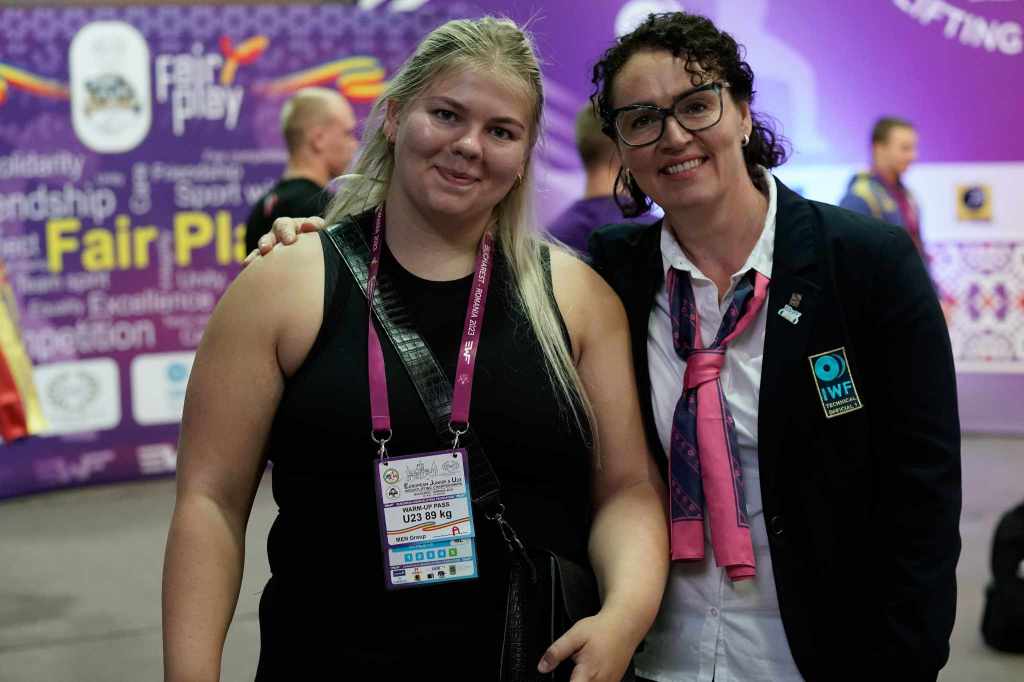 Erna Héðinsdóttir móðir Brynjars, ritari lyftingasambandsins og starfsmaður á mótinu fékk svo þann heiður að veita verðlaun í 89kg flokkinum.