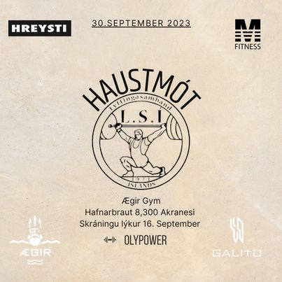 Haustmót Lyftingasambans Íslands og Ægir Gym í Ólympískum lyftingum verður haldið í húsnæði Ægis Gym, Hafnarbraut 8, Akranesi laugardaginn 30. september 2023.