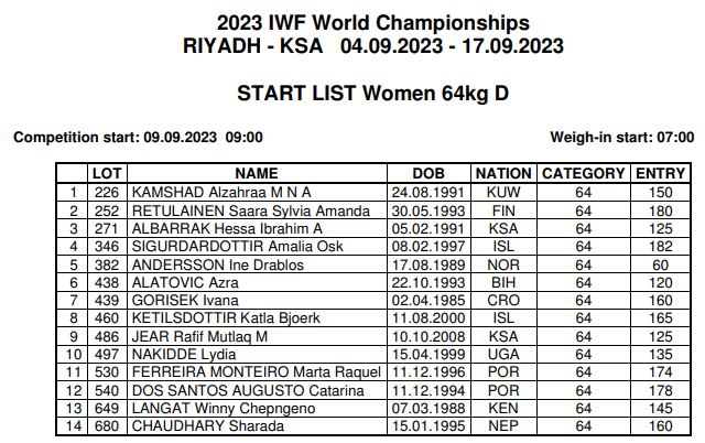 Þessa dagana fer Senior Heimsmeistaramótið í Ólympískum lyftingum fram í Riyadh í Saudi Arabíu.