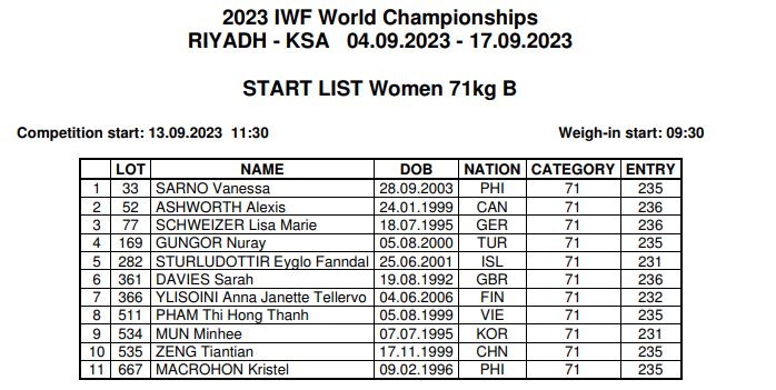 Upplýsingar og tímaseðli mótsins má finna á heimasíðu IWF – https://beta.iwf.sport/