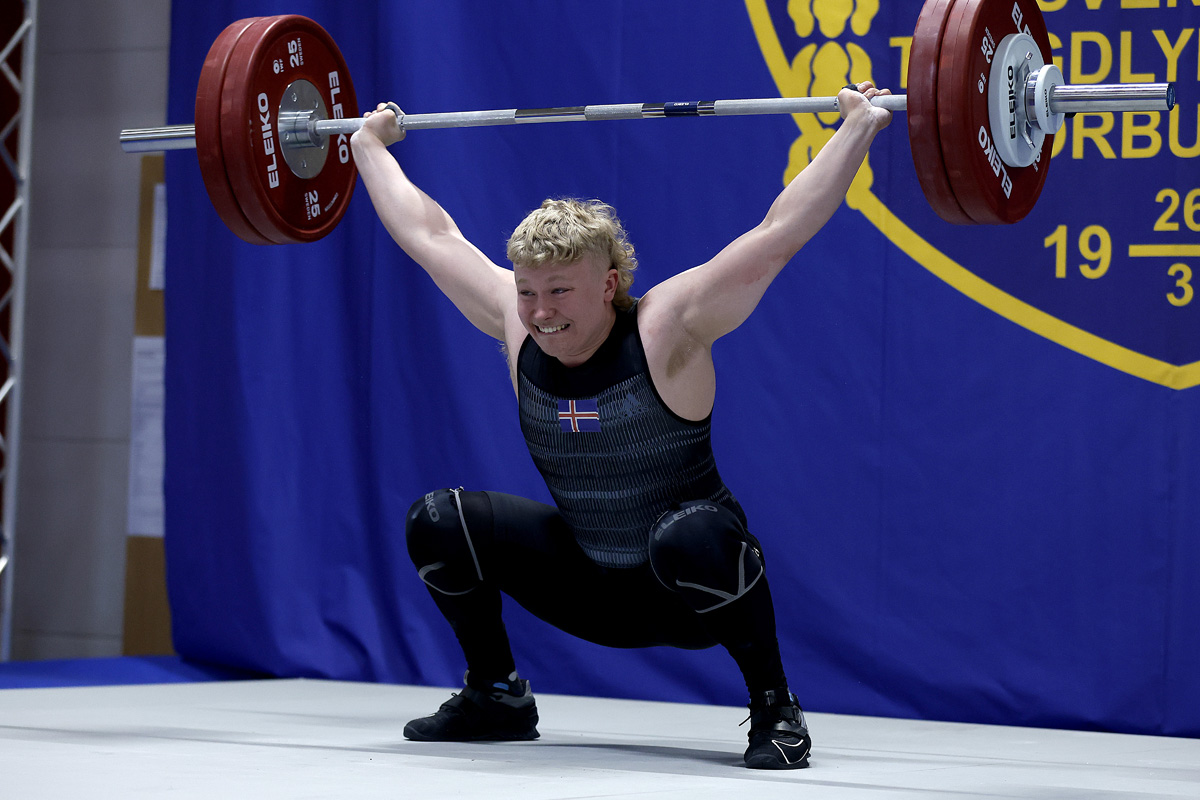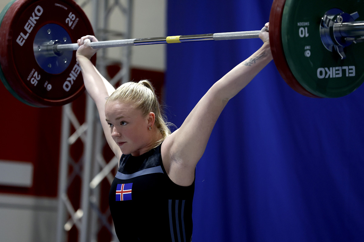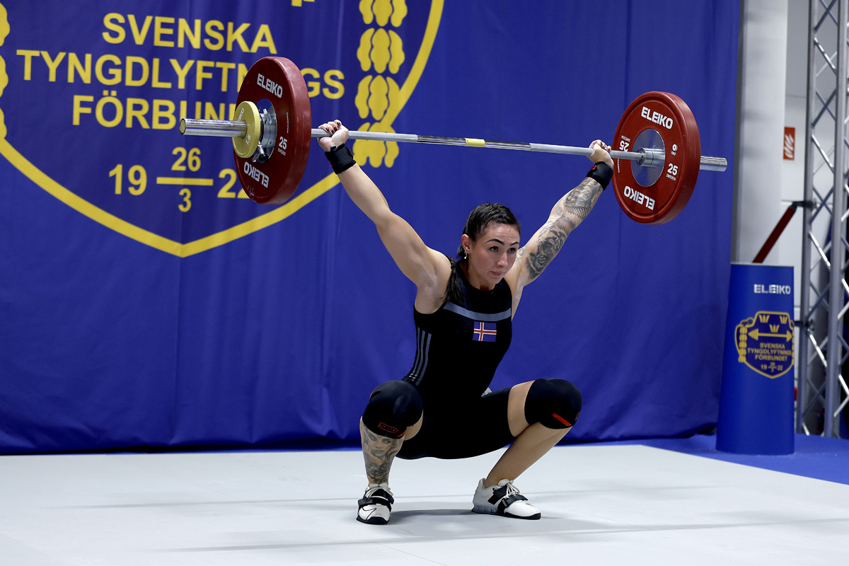 Friðný lyfti 92 kg í snörun, 111 kg í jafnhendingu og 203kg samanlagt, sem jafnframt er C lágmark á EM.