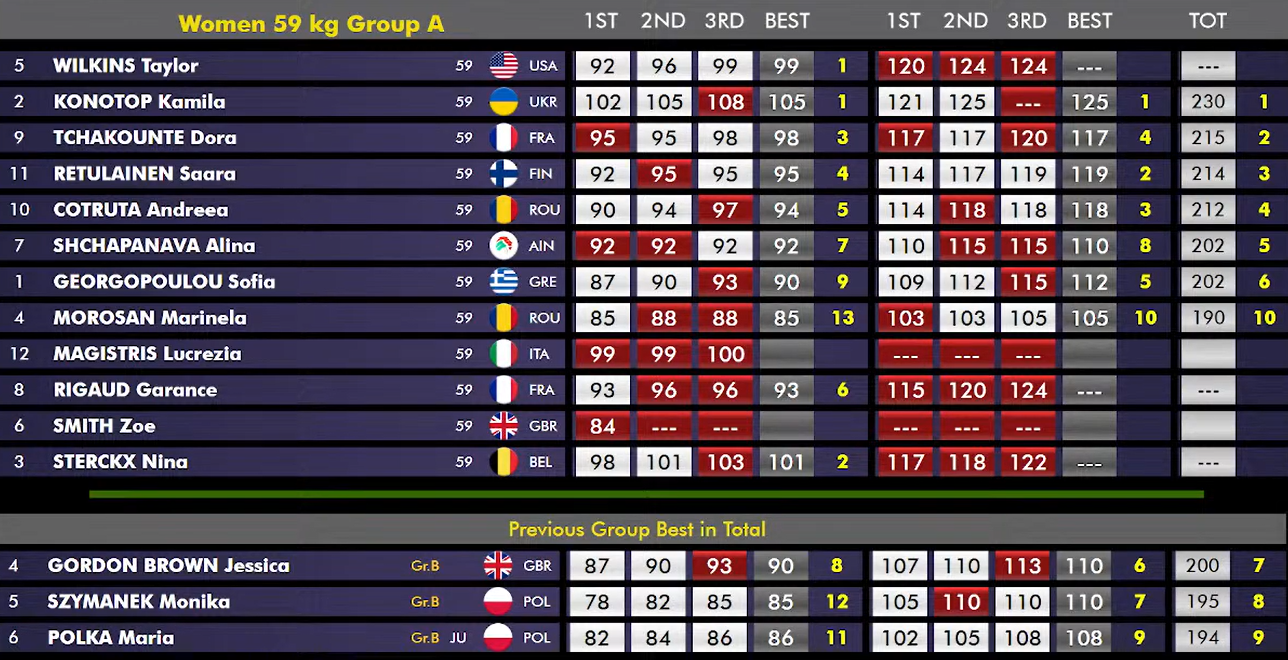 Það má segja að keppni í A-hópi -59kg flokksins hafi verið „blóðug“ en alls féllu 5 af 12 keppendum úr leik enda verið að tefla djarft til að koma sér upp listann fyrir ólympíuleikana.