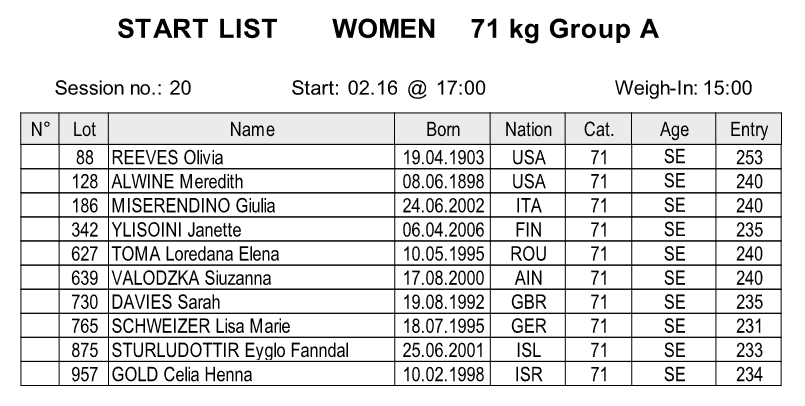 | 14 | STURLUDOTTIR Eyglo Fanndal | ISL | 231 | A |