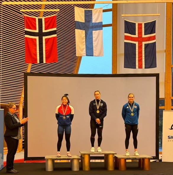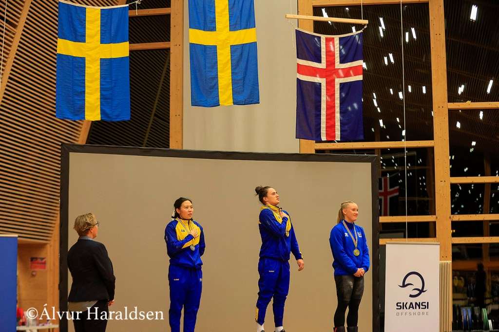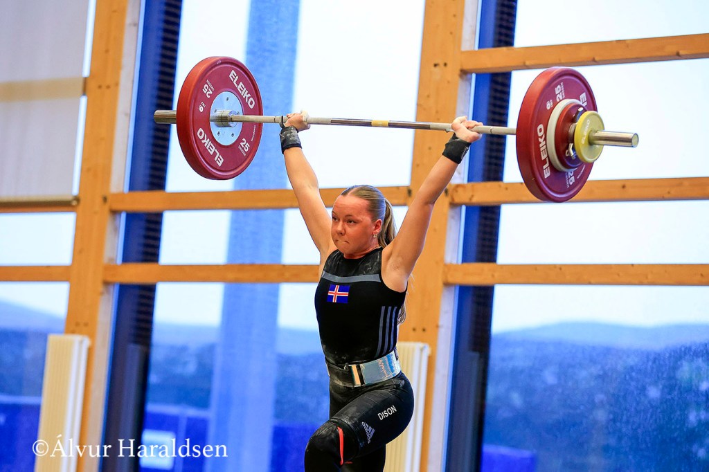 Reynsluboltinn Þuríður Erla Helgadóttir varð þriðja í -59 kg flokkinum og lyfti hún 77 kg í snörun og 104 kg í jafnhendingu eftir smá bras í snörun og opnun í jafnhendingu, samtals 181kg. Þetta var fyrsta norðurlandamót hennar síðan 2019.
