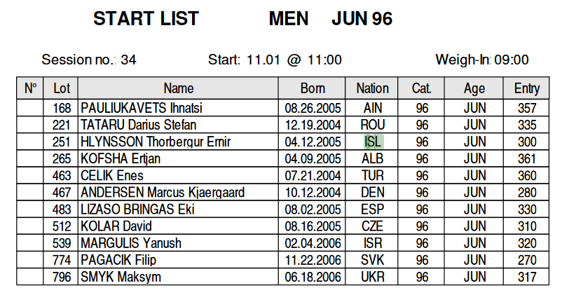 1.Nóvember klukkan 11:00 að staðartíma (10:00 íslenskum) keppir Þórbergur Ernir Hlynsson