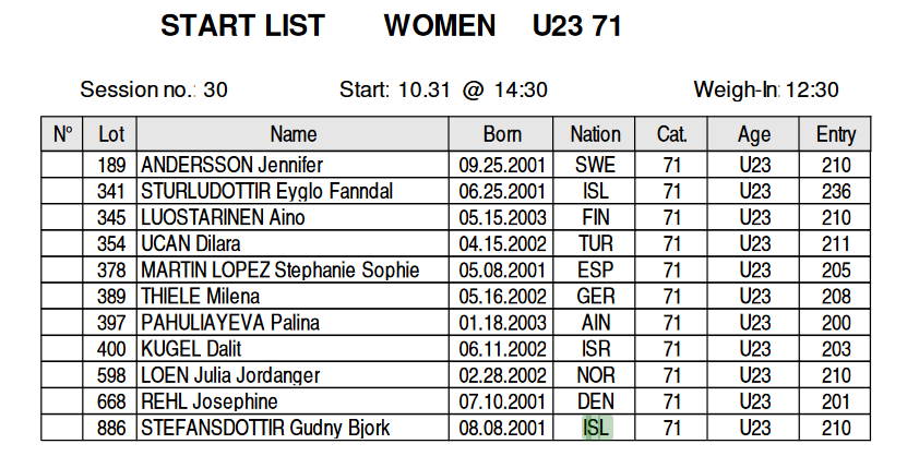 31.Október klukkan 14:30 að staðartíma (13:30 íslenskum) keppa Eygló og Guðný.