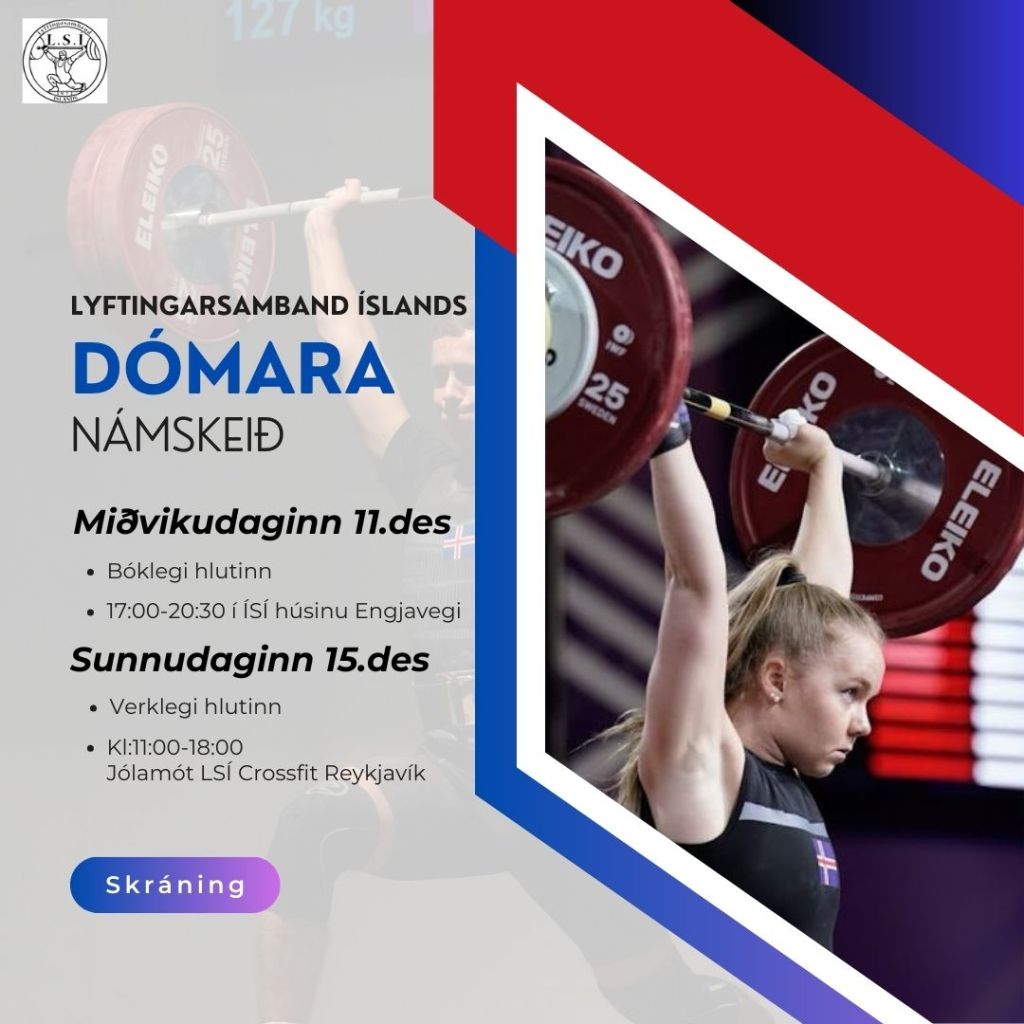 Dómarar eru mikilvæg stoð í hverri íþrótt. Án dómara er engar keppnir eða mót. Lyftingasamband Íslands býður upp á dómaranámskeið dagana 11. og 15. desember nk. með það að markmiði að stuðla að nýliðun í hópnum.