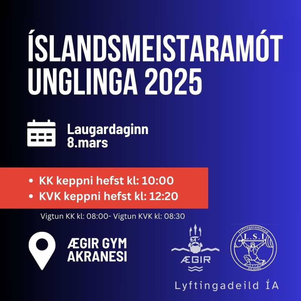 Íslandsmeistaramót unglinga 2025- keppendalisti og dagskrá Birt þann febrúar 26, 2025 af María Rún Þorsteinsdóttir Deila: Click to share on X(Opnast í nýjum glugga) X Click to share on Facebook(Opnast í nýjum glugga) Facebook Click to share on LinkedIn(Opnast í nýjum glugga) LinkedIn Líka við Hleð... Tengt efni