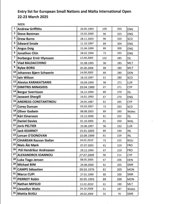Smáþjóðamótið í ólympískum lyftingum fer fram í Möltu næstkomandi laugardag og sunnudag. Mótið er liðakeppni þjóða sem hafa eina milljón íbúa eða færri og eru aðilar að Smáþjóðasambandinu. Mótið er haldið samhliða Opna Möltu mótinu og þátttökuþjóðirnar í ár eru 15 talsins og keppendur 125 talsins á mótunum tveimur.