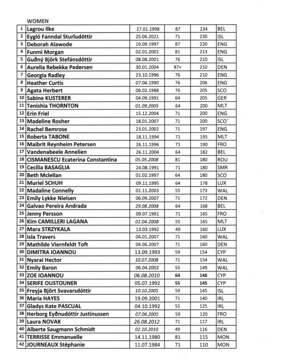Þess má geta að Ísland hefur sigrað liðakeppnina síðastliðin tvö ár og á því titil að verja.