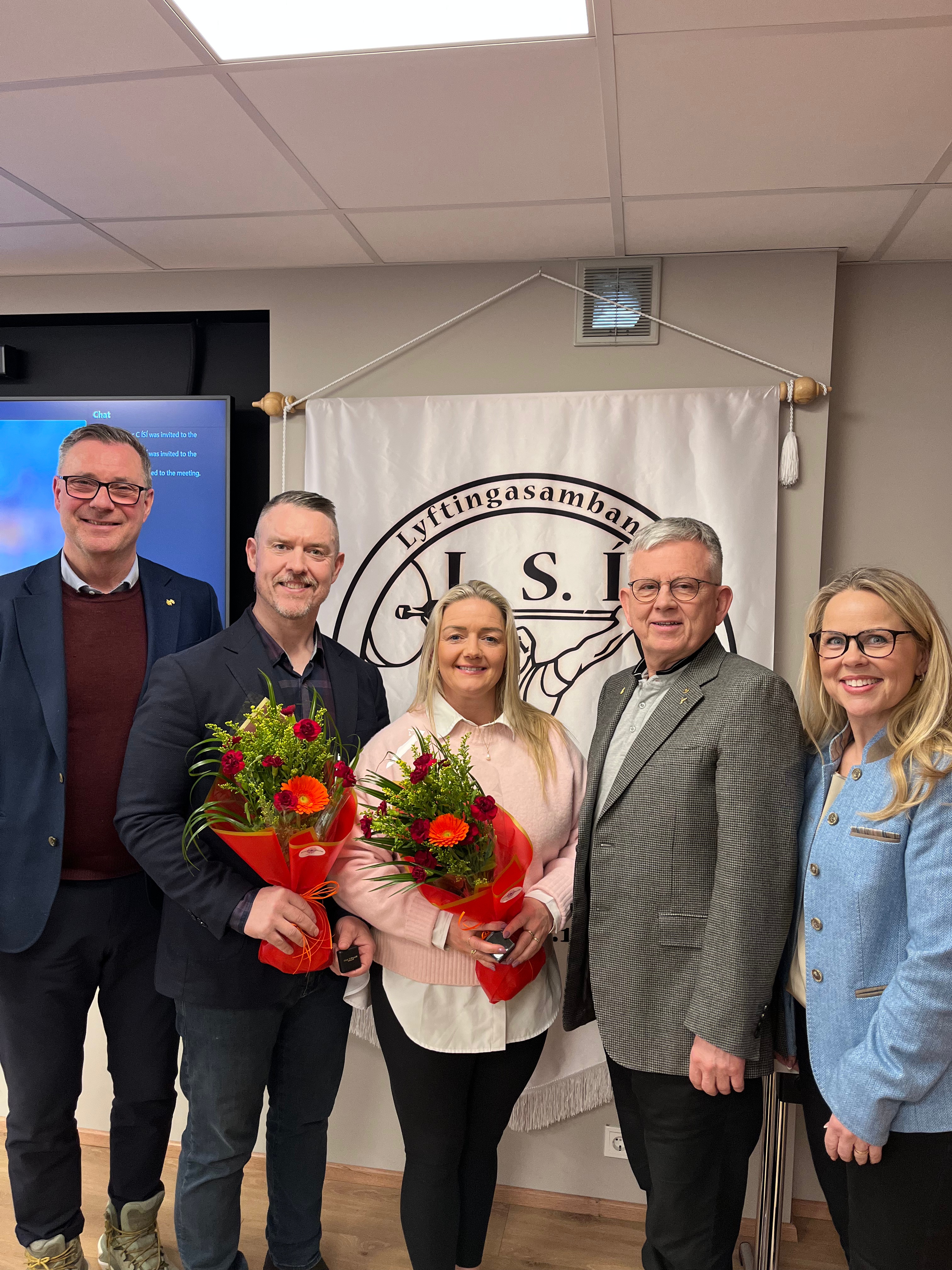 Frá vinstri: Willum Þór Þórsson, forseti ÍSÍ, Ingi Gunnar Ólafsson, handhafi gullmerki ÍSÍ, Hrund Scheving, handhafi silfurmerki ÍSÍ, Hafsteinn Pálsson, þingforseti og Harpa Þorláksdóttir, formaður LSÍ.