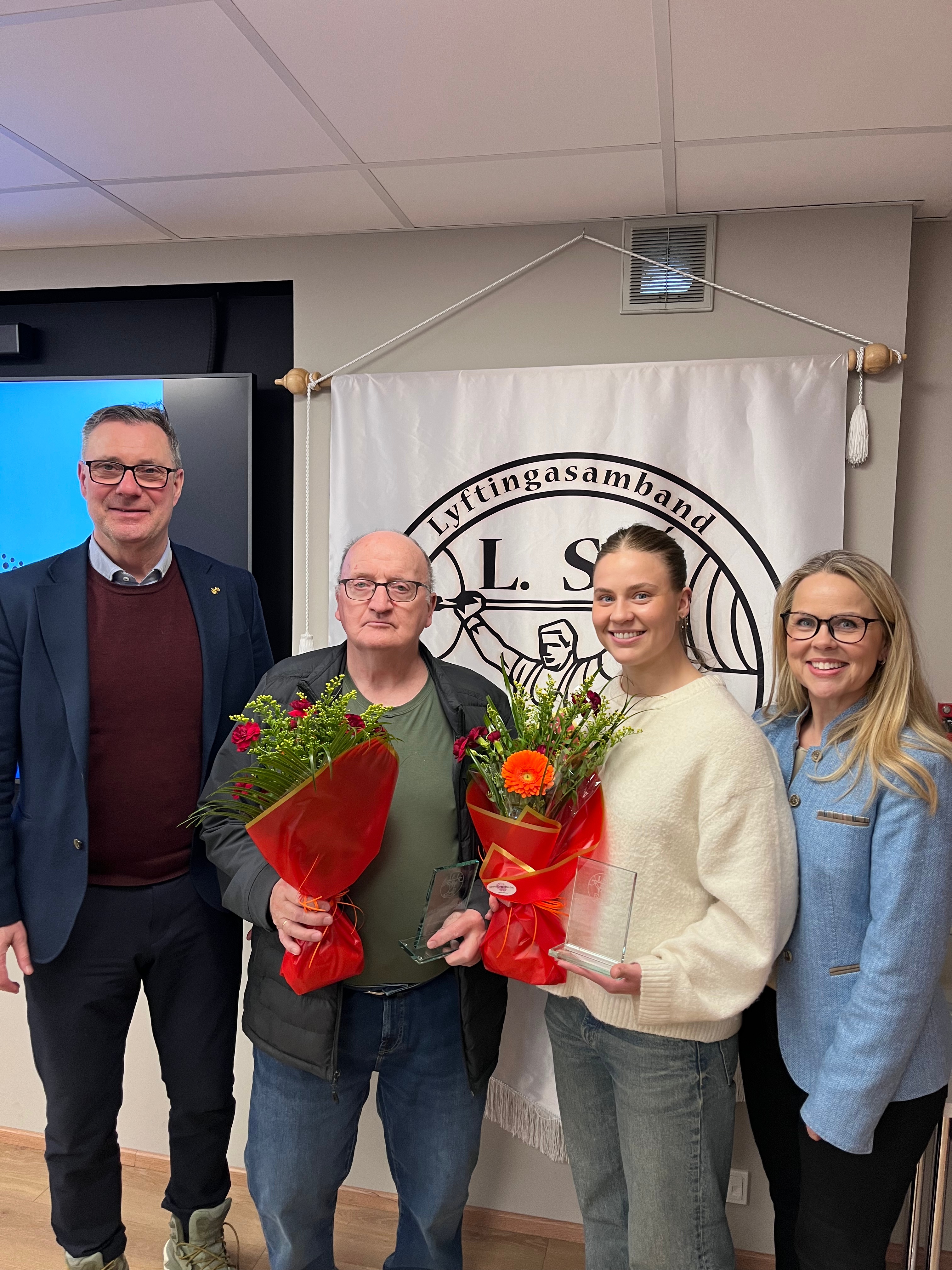 Frá vinstri: Willum Þór Þórsson, forseti ÍSÍ, Óskar Sigurpálsson 10. heiðursfélagi LSÍ, Eygló Fanndal Sturludóttir 12. heiðursfélagi LSÍ og Harpa Þorláksdóttir, formaður LSÍ.