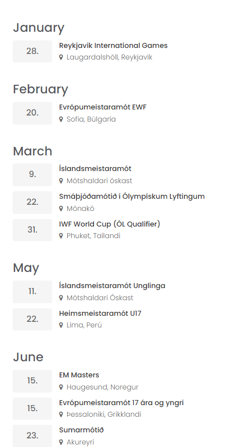 Stjórn lyftingasambandsins hefur valið lyftingafólk ársins 2023, einnig eru ungmenni ársins valinn í flokki 18-20 ára, 16-17 ára og 15 ára og yngri. Afhending farandbikara mun eiga sér stað á næstu vikum, ef þið eruð með bikar og ekki hefur verið haft samband við ykkur megið þið endilega láta Maríönnu framkvæmdastjóra vita í gegnum lsi@lsi.is.